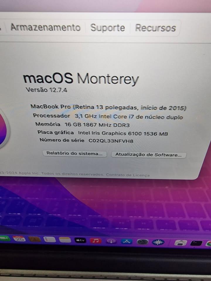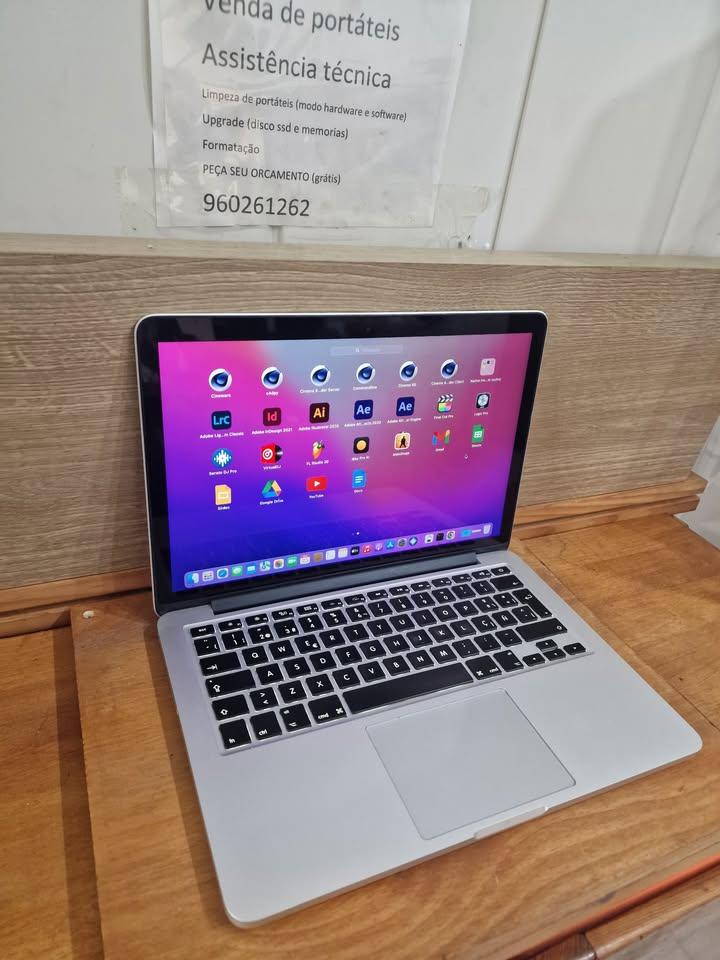 Intel Core i7 dual-core a 3,1 GHz, Disco 512 Nvme 16 GB de memória Ram Bateria Nova HDMI Ecrã Retina Ecrã de 13,3 polegadas resolução nativa de 2560x1600 bateria bom estado vai com carregador Office 2019 Photoshop 2021 Adobe After effects adobe indesign FL studio DJay PRO VirtualDJ logic pro x e outros programas pode ver nas fotos poderá ver restante especificações nas fotos pode ver ser testado no meu atelier de informática não faço trocas por o