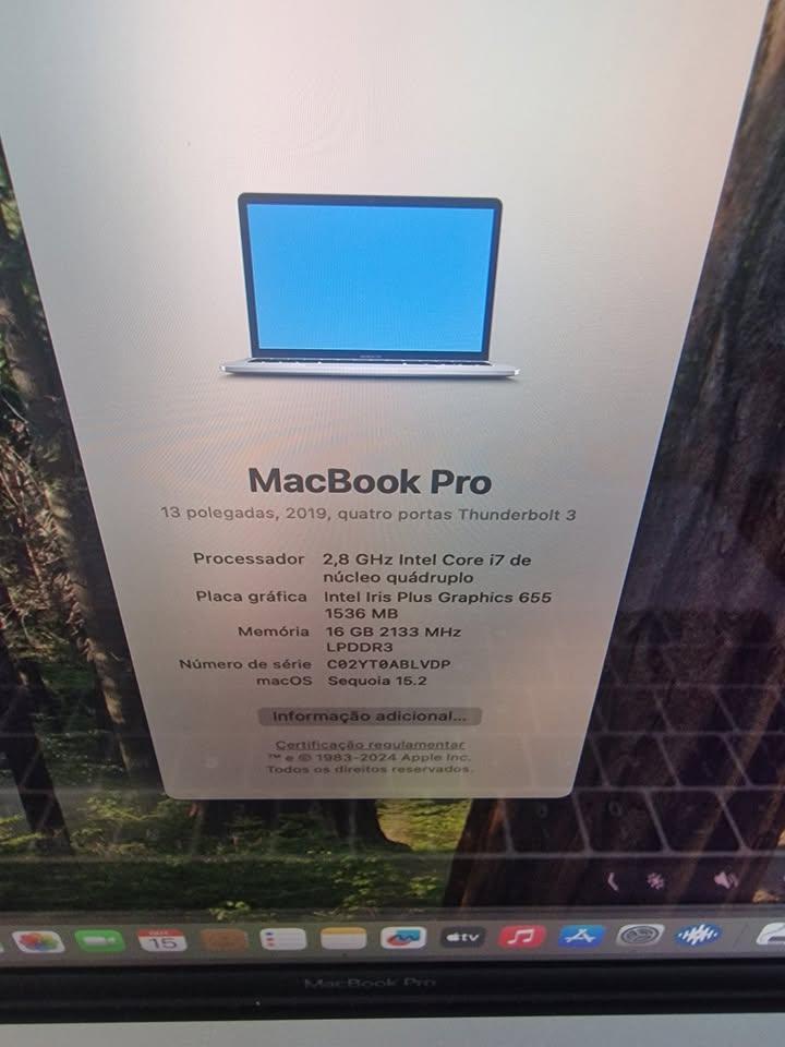 Intel Core i7 2.8 GHz Nucleo Quadruplo DISCO de 512 gb Memoria 16 gb DDR4 portas Thunderbolt 3) TOUCH BAR Bateria bom estado Ecrã RETINA 13 polegadas (2560x1600) MacOS Sequoia (o ultimo OS) vai com carregador office Adobe photoshop adobe after effects final cut virtual dj djay pro serato DJ Pro FL studio 20 e outros programas pode ver nas fotos pode ver ser testado no meu atelier de INFORMATICA Posso receber retorno de portáteis da Apple e não faço trocas por outros pro