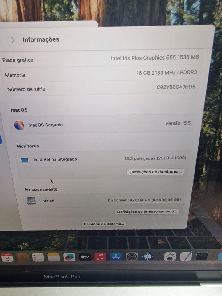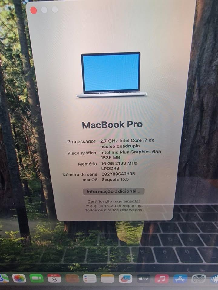 Intel Core i7 2.7 GHz Nucleo Quadruplo DISCO 1TB gb Memoria 16 gb DDR4 portas Thunderbolt 3) TOUCH BAR Bateria bom estado Ecrã RETINA 13 polegadas (2560x1600) MacOS Sequoia (o ultimo OS) office Adobe photoshop adobe after effects final cut virtual dj djay pro serato DJ Pro FL studio 20 e outros programas pode ver nas fotos pode ver ser testado no meu atelier de INFORMATICA Posso receber retorno de portáteis da Apple e não faço trocas por outros produtos também posso e