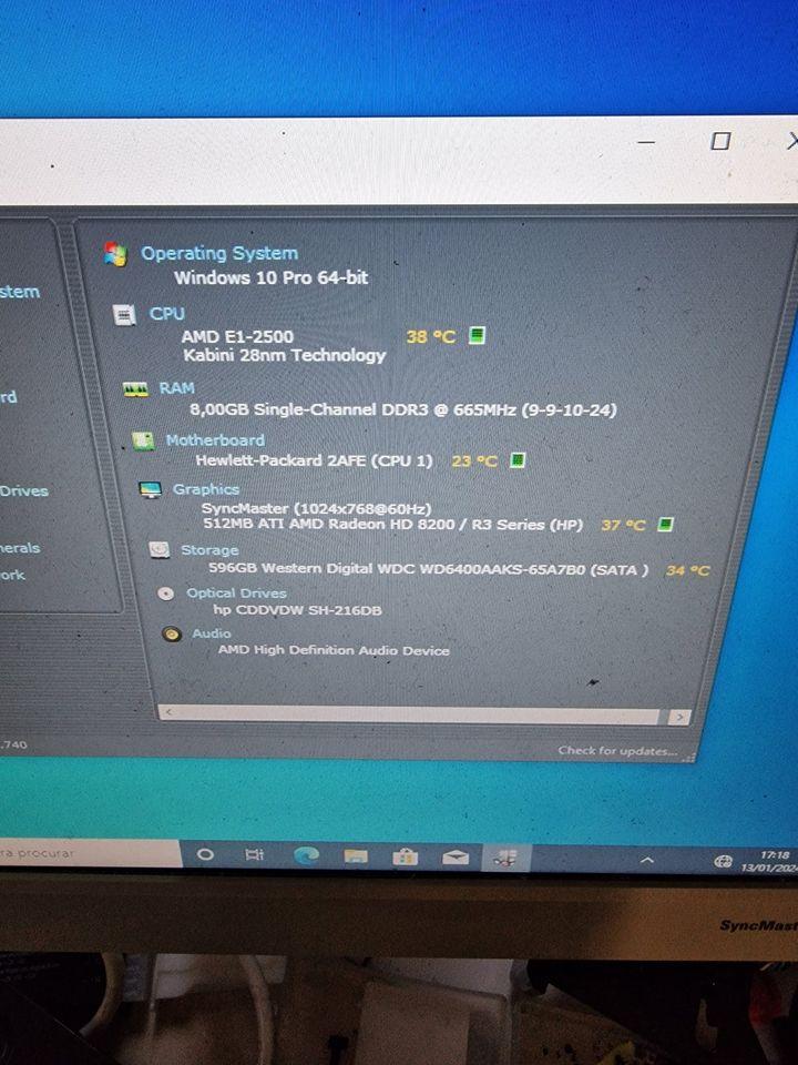AMD E1-2500 APU 8 gb DDR3 Disco 640gb Gráfica AMD HD 8240 graphics Leitor de cartões wi-fi vem com Windows 10 office winrar poderá ver no meu atelier de informática não faço trocas por outros produtos e preço fixo
