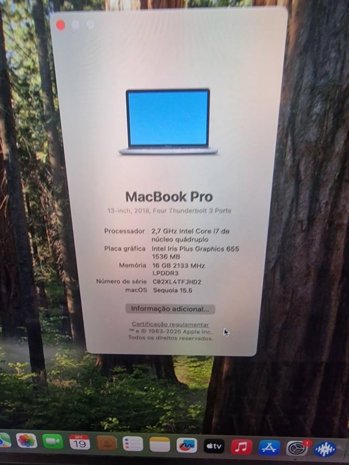 Intel Core i7 2.7 GHz Nucleo Quadruplo DISCO 1TB gb Memoria 16 gb DDR4 portas Thunderbolt 3) TOUCH BAR Bateria bom estado Ecrã RETINA 13 polegadas (2560x1600) MacOS Sequoia (o ultimo OS) office Adobe photoshop adobe after effects final cut virtual dj djay pro serato DJ Pro FL studio 20 e outros programas pode ver nas fotos pode ver ser testado no meu atelier de INFORMATICA Posso receber retorno de portáteis da Apple e não faço trocas por outros produtos também posso e